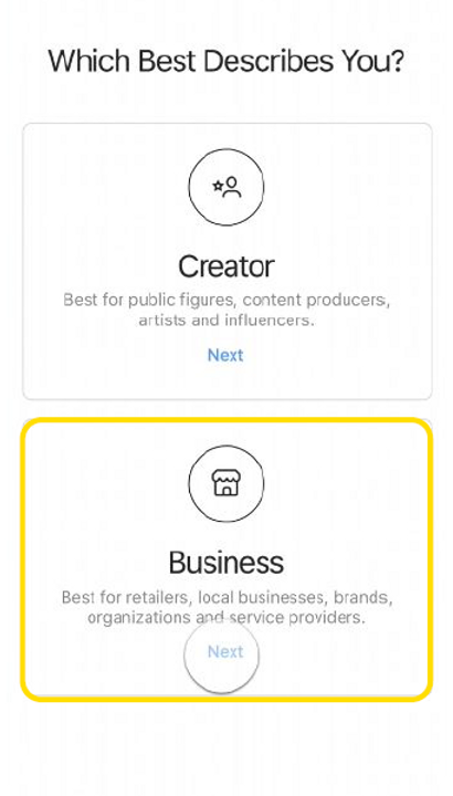 Creating social media account: Instagram (Personal / Corporate / Business / Public Figure)
