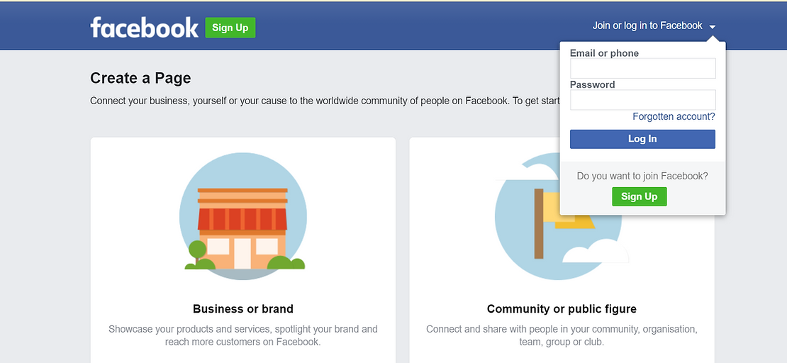 Setting up social media page: Facebook page (Corporate / Business / Public Figure)