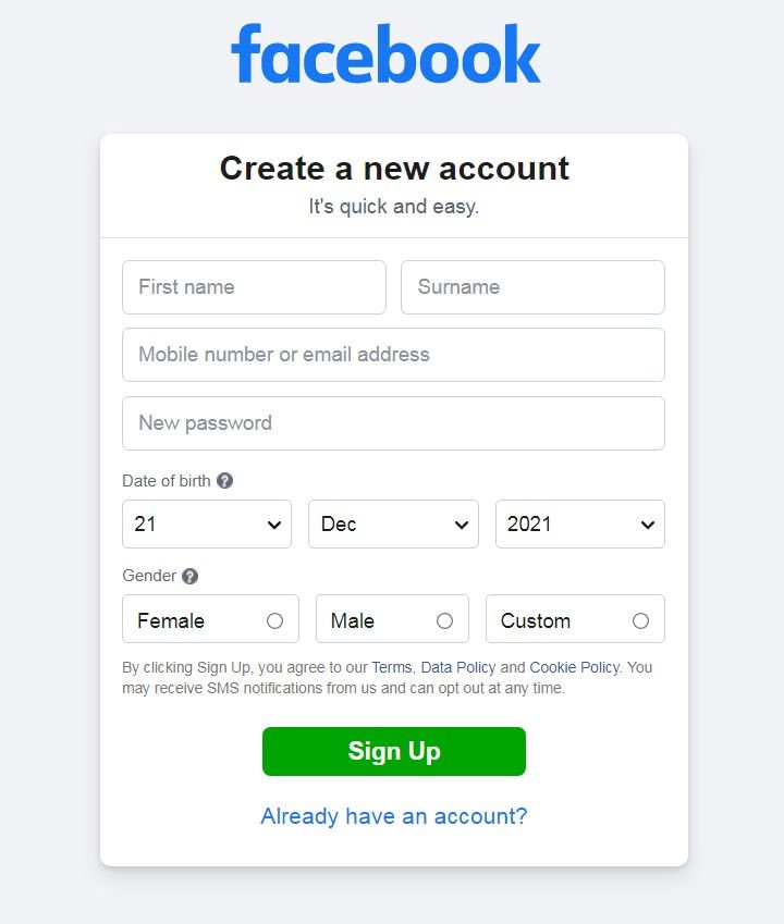 Social Media Account Creation: Facebook Account (Personal)