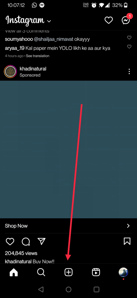 At the top, select Create New, or swipe right anywhere in the Feed.