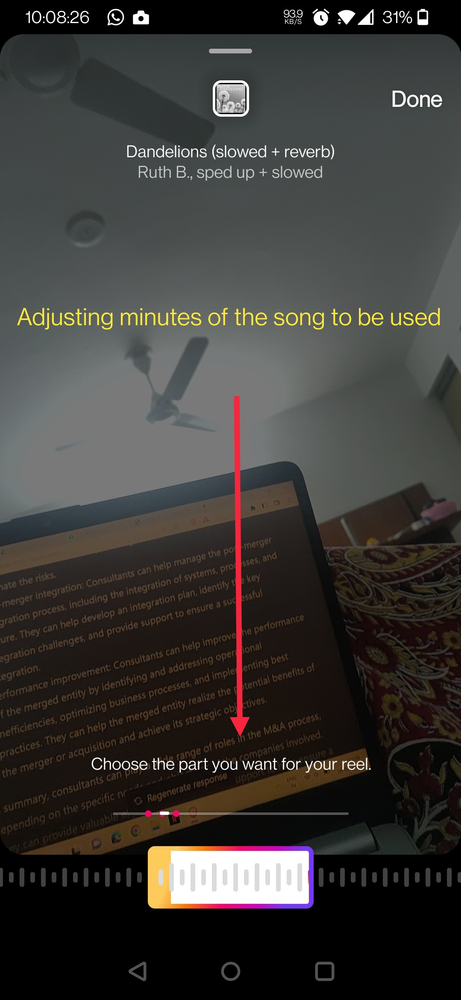 To add audio over the video, tap or hold the record. Then tap Done to complete sharing your reel.