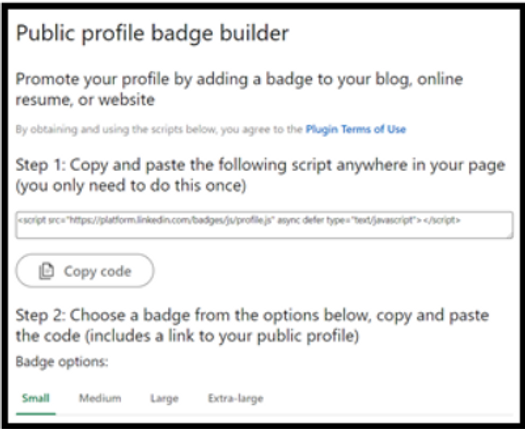 Scroll down and you’ll see a box of ‘public profile badge.’ Click on the option to create your profile badge.