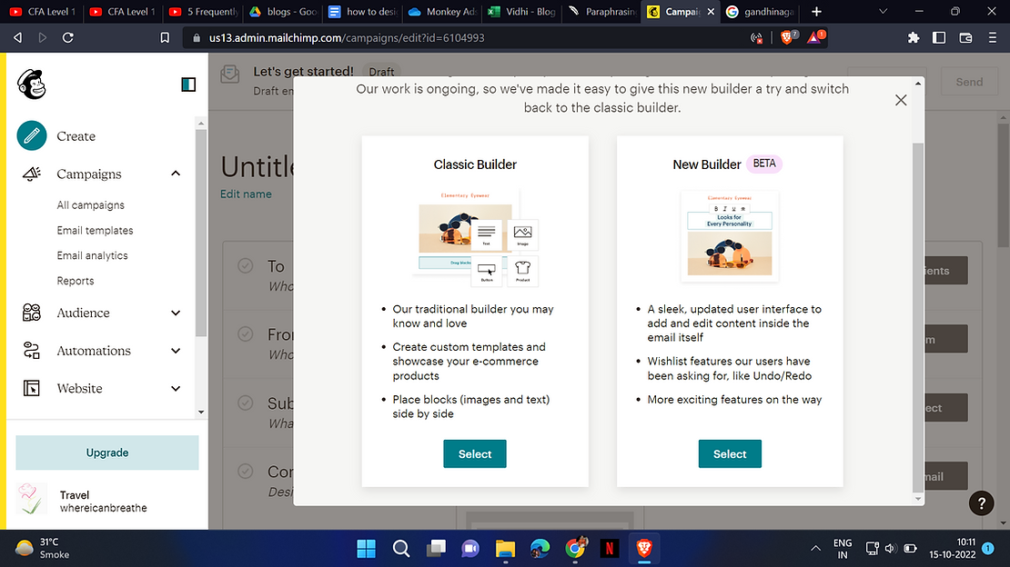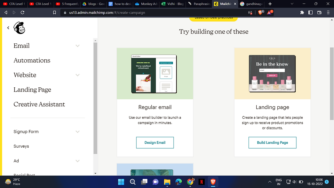 Create an account with the mail designer you want to use, in this case, we have chosen MailChimp