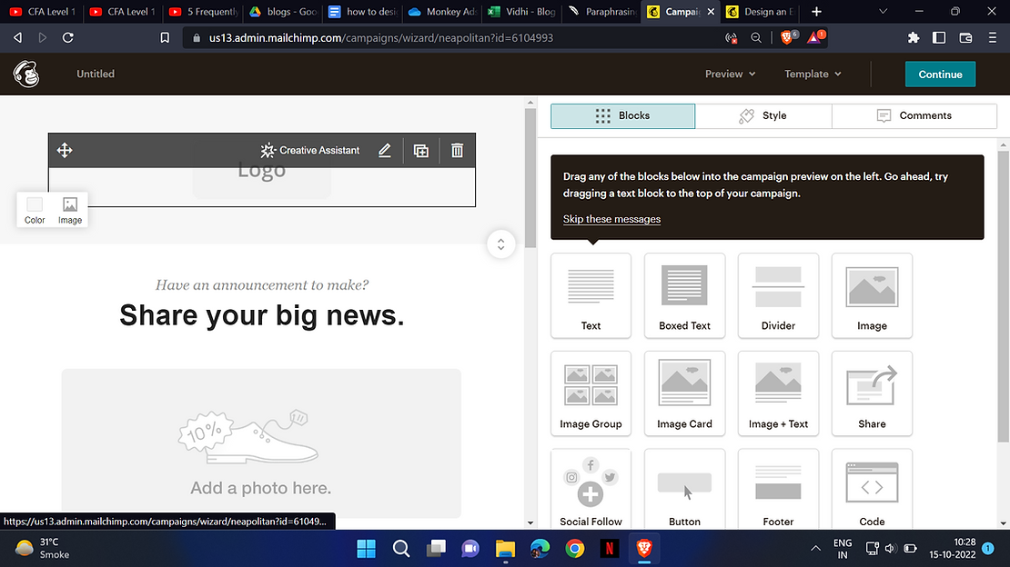 You may quickly duplicate, remove, and rearrange content blocks with our drag-and-drop editor. To change the appearance and feel of your campaign, drag and drop different content blocks into your layout and reorganize them as needed.