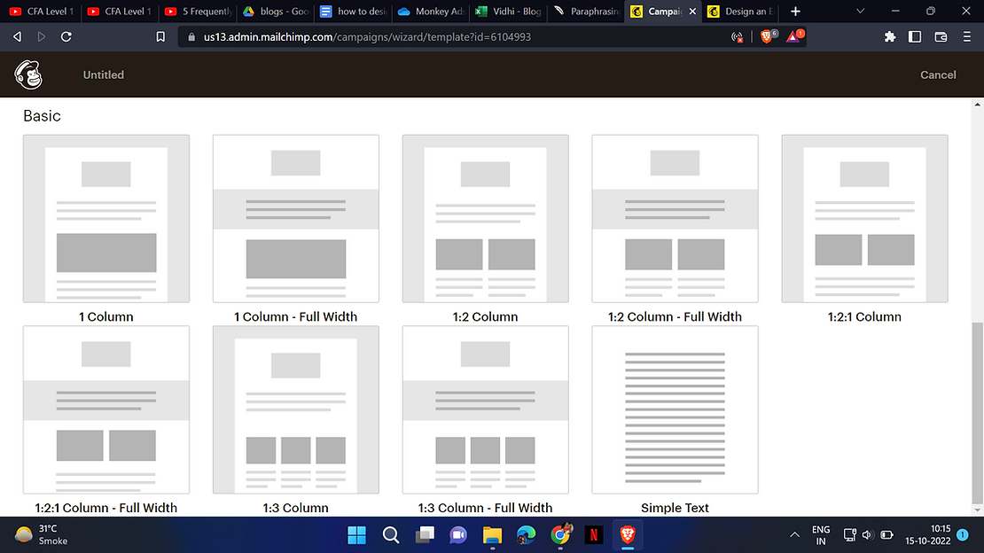 Featured and Basic designs are included in the layouts category. The featured templates were created with a few objectives in mind. Each template has content blocks that may be customized and used to promote new products and other things. Standard templates come in both standard and full-width variations. Each campaign section’s background is extended by full-width templates to fill the width of the client being used to view it.