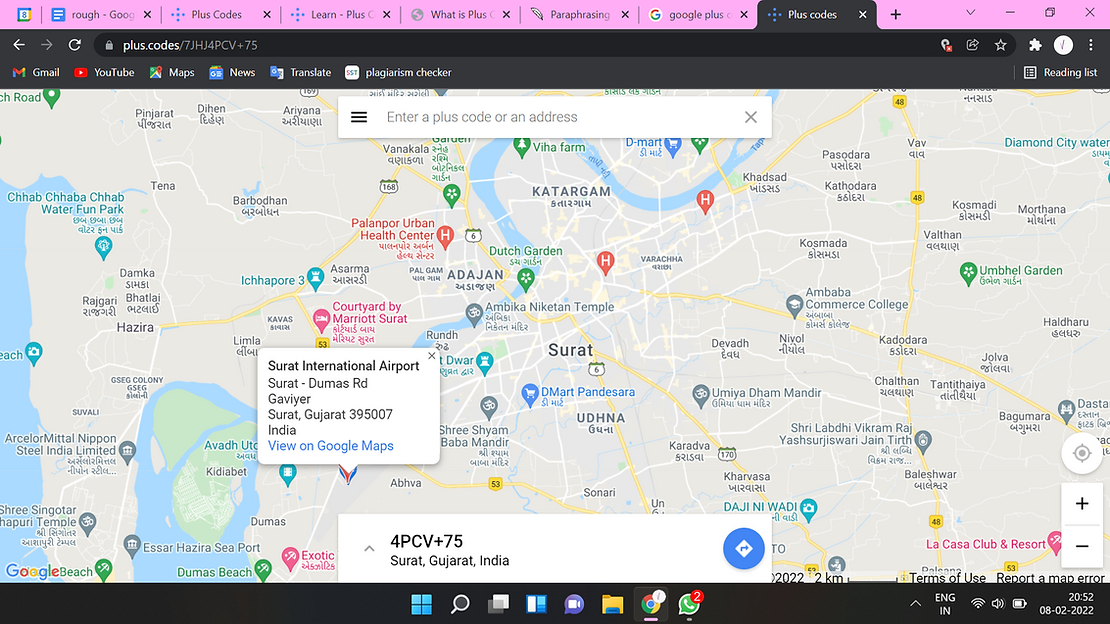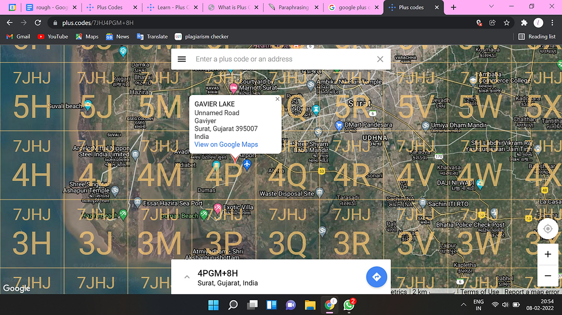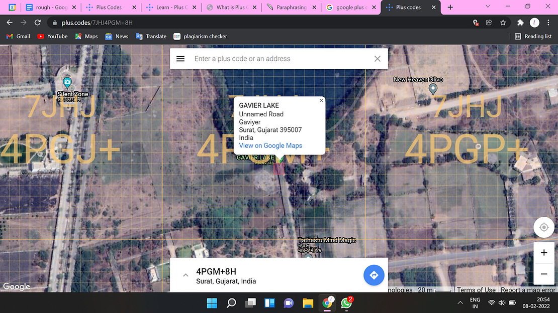 And when you search for 4PGM+8H, you get the exact location of Gavier Lake, Surat.